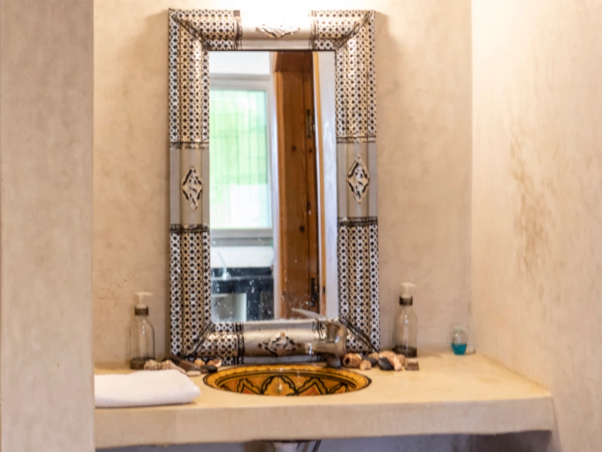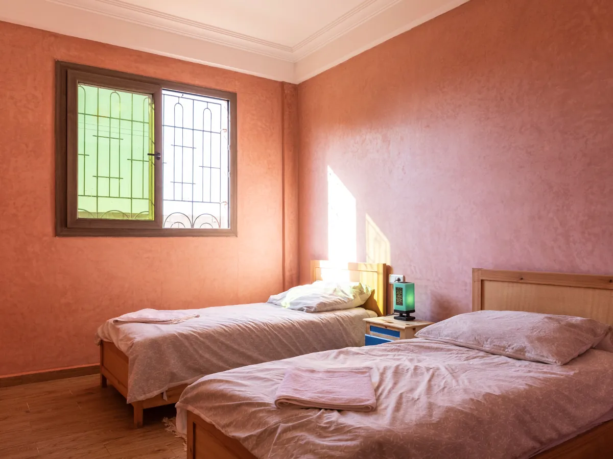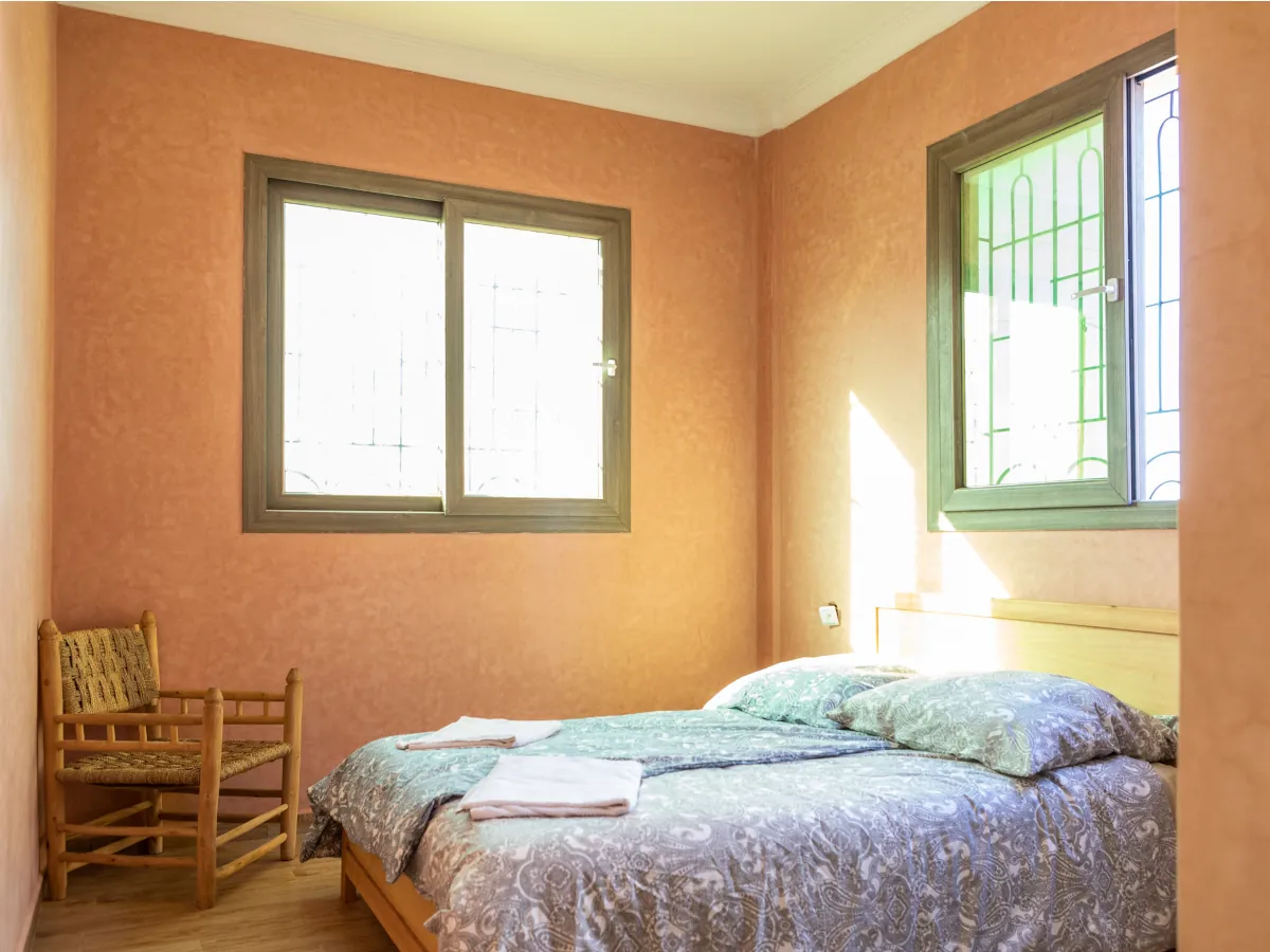 - Ausstattungen: Bettwäsche, Doppelbett, eigenes Bad, Einzelbetten, Esstisch, Handtücher, Herd, Kaffee- und Teezubehör, Kaffeemaschine, Kleiderständer, kostenloses Parken, Küche, marokkanisches Sofa, privater Eingang, Schlafzimmer, Sonnenterrasse / Dachterrasse, TV, Waschmaschine, WIFI, Wohnzimmer, Wohnzimmertisch