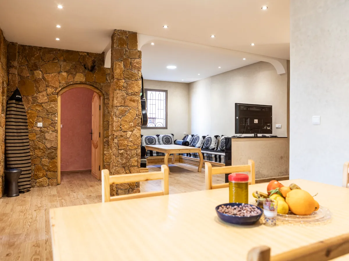 Das geräumige Apartment „Friends“ in Mirleft begrüßt dich im beliebten Viertel Aftas, nur einen kurzen Weg entfernt vom Meer.
